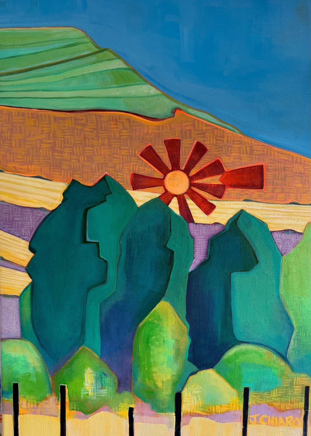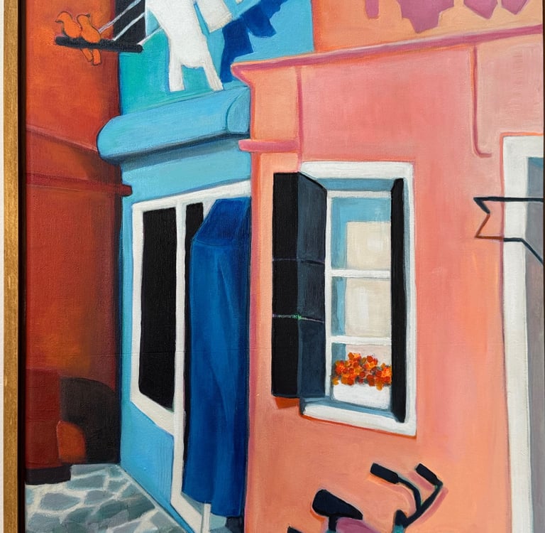 I am currently living and painting in Madrid. I have an academic background in ceramic sculpture and costume design and my professional career was as a commercial artist with the Walt Disney Company. I am currently working on a collection of paintings inspired by both adventures and daily life. I am painting with acrylics and oils at the moment. These paintings are done on either wood panels, board or canvas. I sketch the scene and begin painting by focusing primarily on the large shapes then I give myself total freedom with color. I am using a lot of bright colors right now. I feel that colors are a force and provide an energy that defies negativity. My hope is to create art that brings out the positivity in the world. As you may have noticed these paintings are primarily portrayals of ordinary places, objects, transportation, pets, skylines and backstreets. But, something special about these images caught my attention. I have tried to portray with paint the feeling around them that tells a story that is not ordinary.